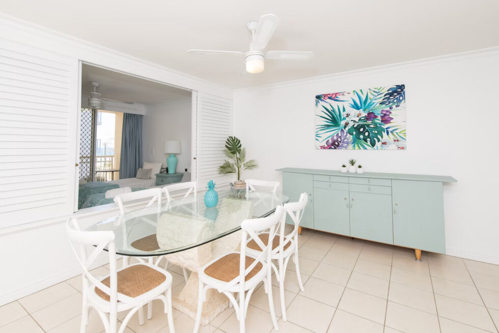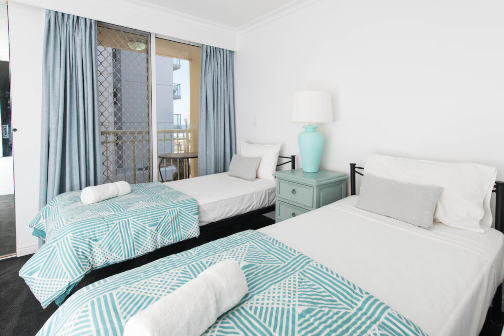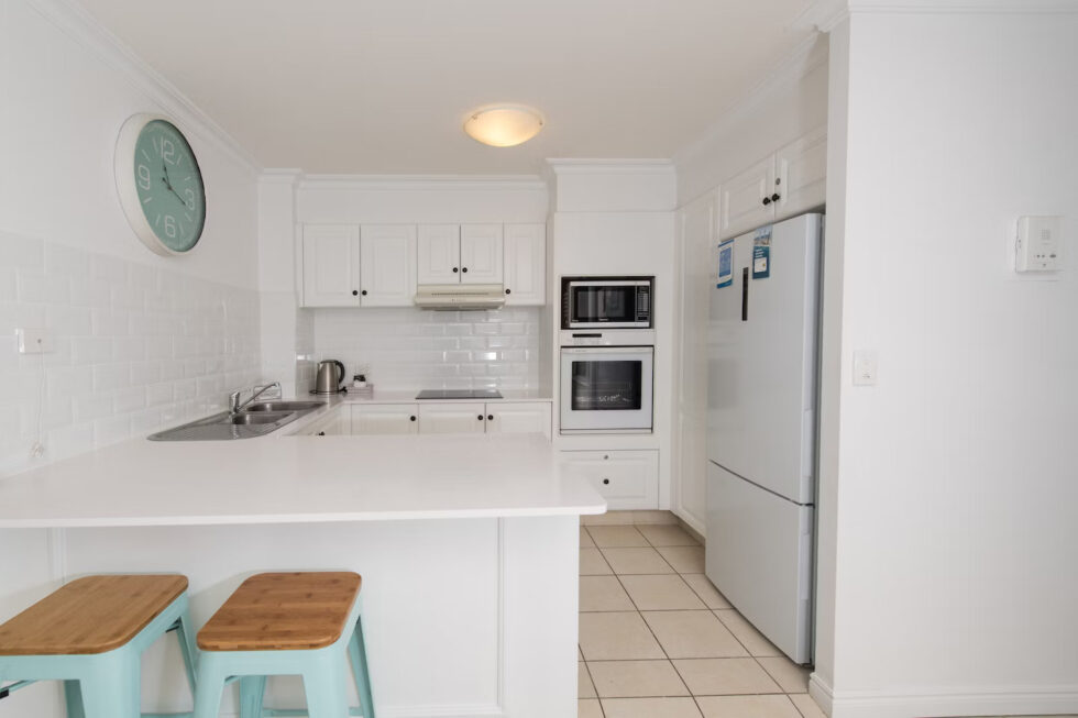 For lengthier Broadbeach stays for up to 5 guests, you’ll love our two-bedroom long-stay apartments. The minimum stay is 14 nights, and the maximum stay is 45 nights. This is a garden-view apartment with a full-size kitchen, spacious lounge and dining, two bathrooms, and air conditioning. The apartment is serviced weekly.